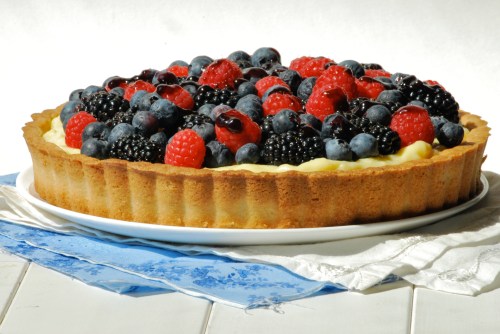So you already know that I love a good tart. I think I’ve been open about my love of pastry cream, as well. This week, I’ve combined both and added fresh, dazzling fruit for this fabulous Summer dessert. Not surprisingly, my kids love pastry cream, too. And who can blame them– it’s virtually a custard or pudding. As for the berries, now is the time to really start using them in dishes like this– they’re fresh and full-flavored.