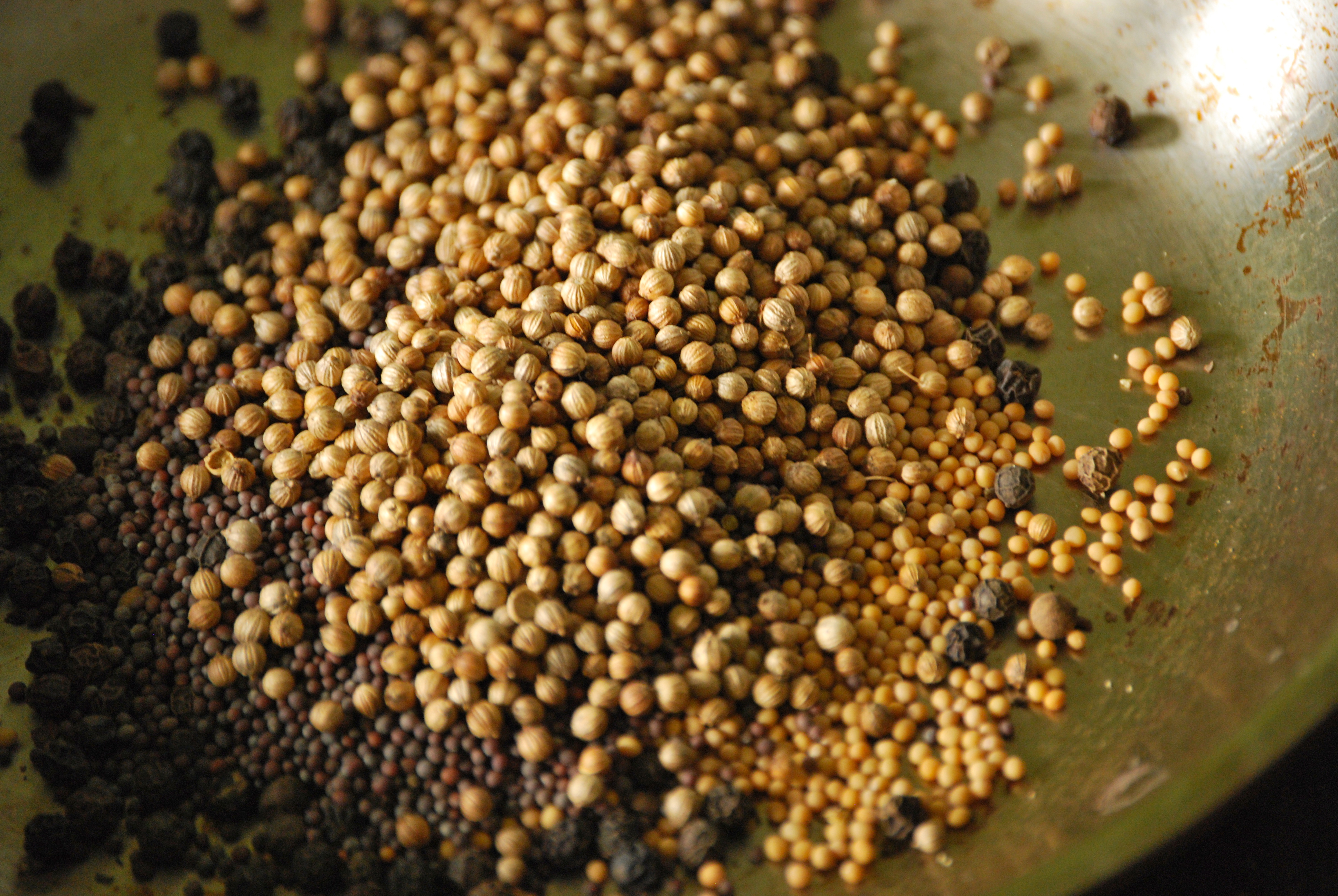 To make the pickling spice: Combine the peppercorns, mustard seeds, and coriander seeds in a small dry pan. Toast over medium heat until they are very fragrant, being careful not to burn them. Have a lid at the ready, as they may start to “pop”. Use a mortar and pestle (or be creative with a rolling pin or side of a chef’s knife) and pulverize the seeds. Combine with other spices. Store in a sealed container, as you will have extra.