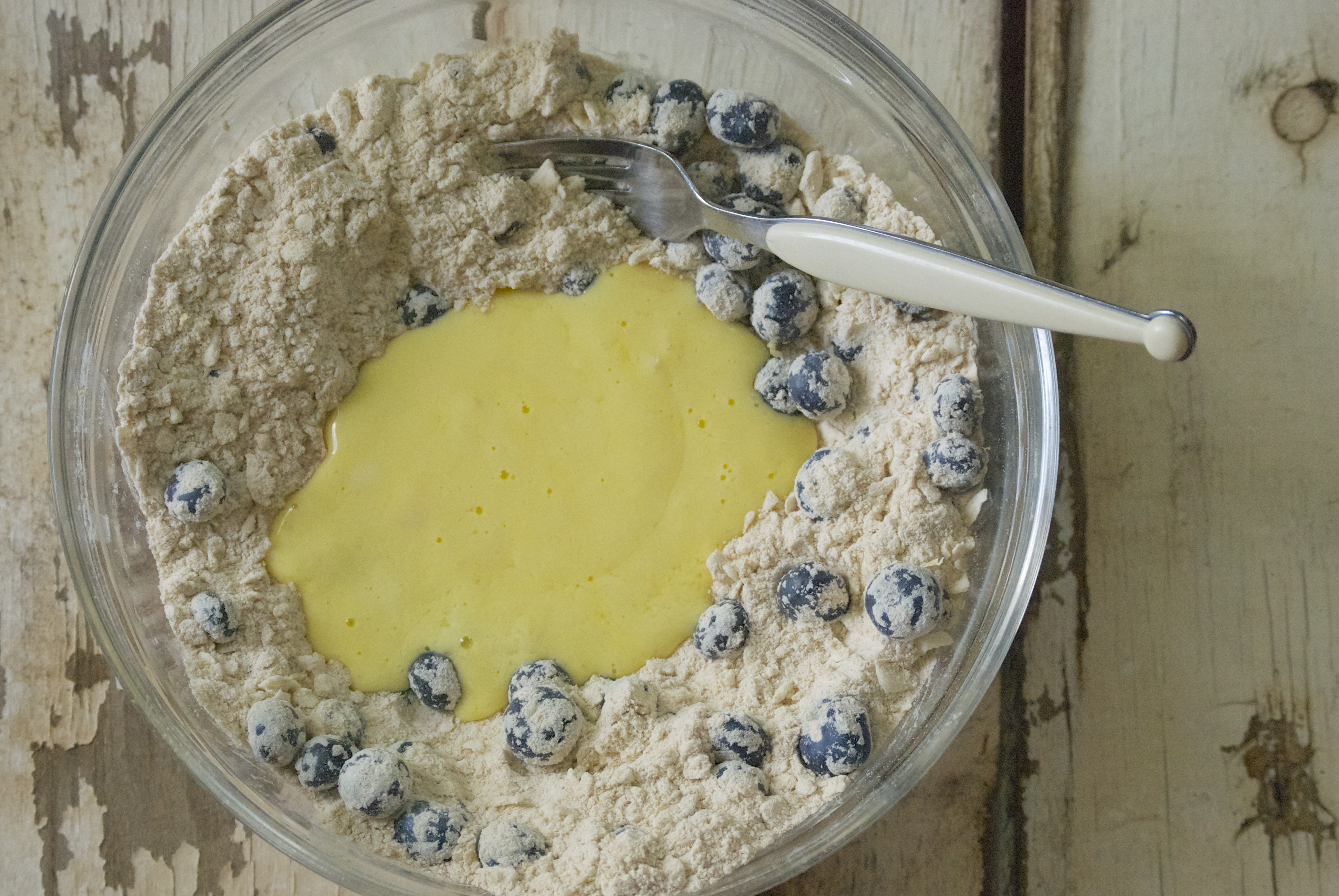 So, through the years of playing around with different scone recipes, I’ve learned that one thing is the key. And I’ve shared this before, but it’s so important that I’ll emphasize it again. Use grated frozen butter. Always use grated frozen butter. In fact– use grated frozen butter for most baked goods– pie crusts and biscuits included. Keeping the dough completely cold is the key to it’s flakiness. It’s so simple to grab a stick of butter from the freezer on a whim and whip these up. Aside from the convenience, grated butter means that you don’t have to work as hard to incorporate it into the flour. It’s already in tiny pea-sized pieces. I’ve found that using my hands works best. Toss it around a bit and then mix in the wet ingredients with a fork or spatula. The less you work with scone dough, the better they’ll turn out.