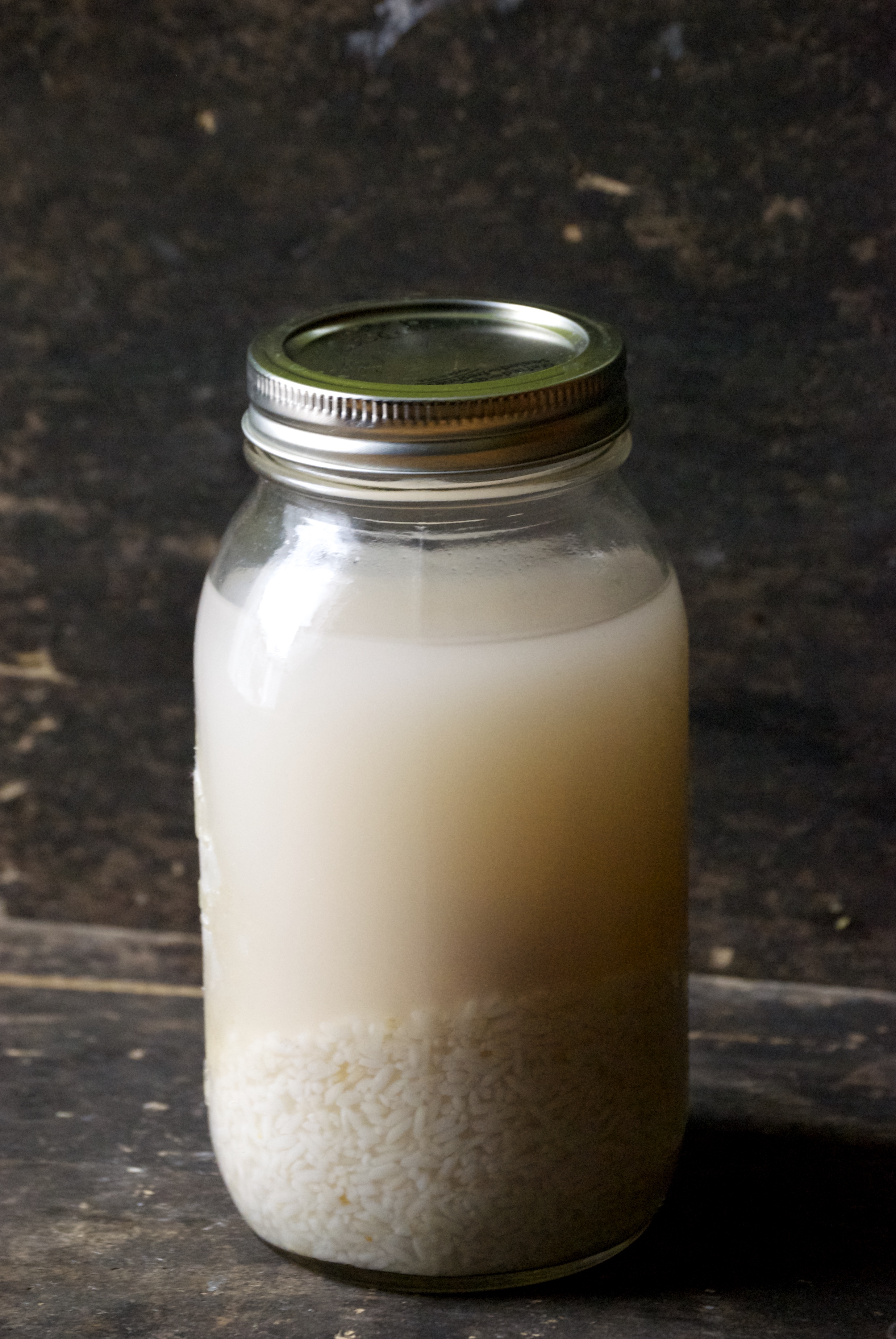 To make the Horchata: begin by pulsing the rice in a blender or food processor until it’s the consistency of coarse polenta. Your blender may or may not do a good job with this task. Mine was mediocre. So, don’t worry if yours doesn’t do this well. Place the rice in a quart jar and add the cinnamon stick and 3 cups of warm water. Refrigerate for at least 8 hours, but preferably overnight.