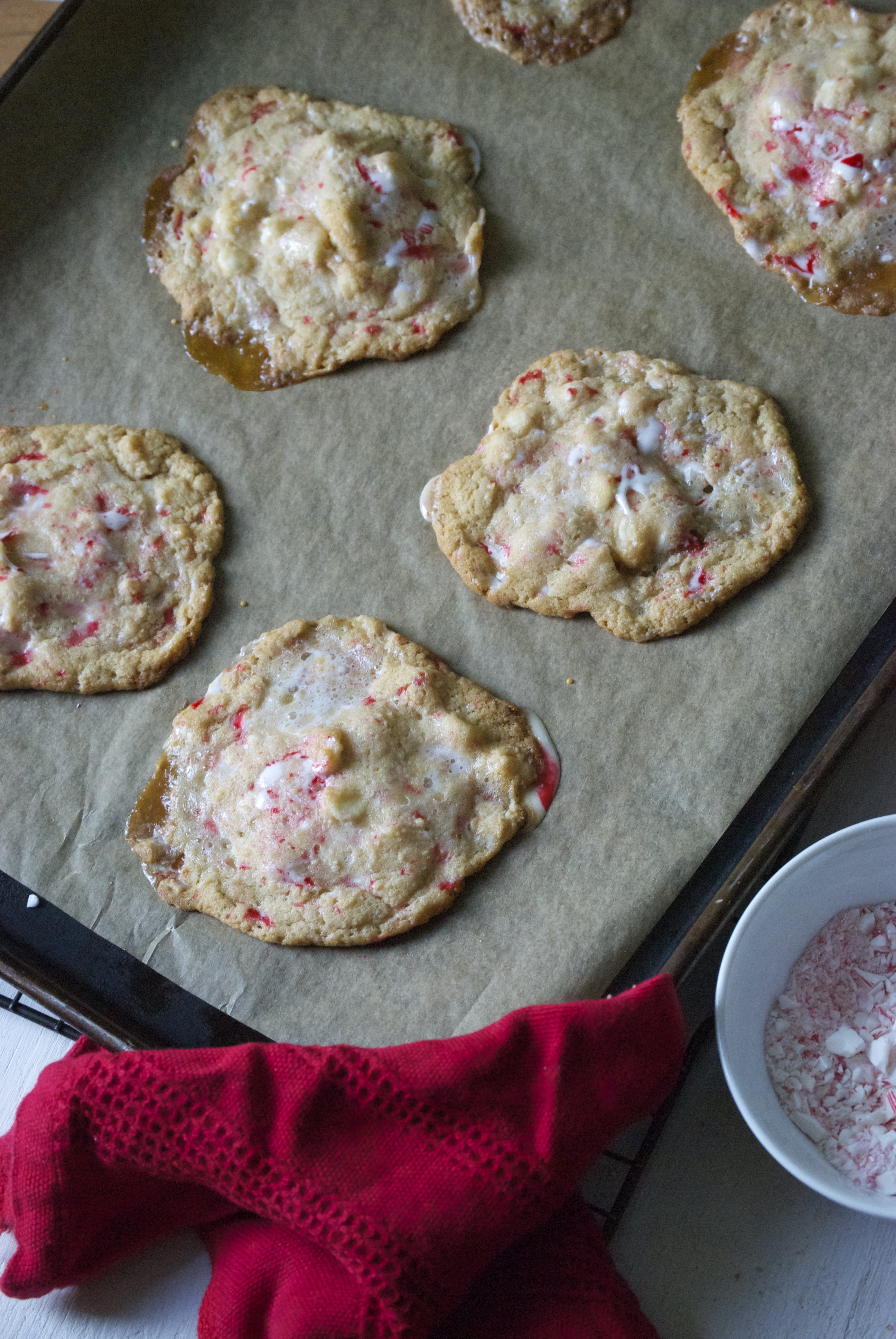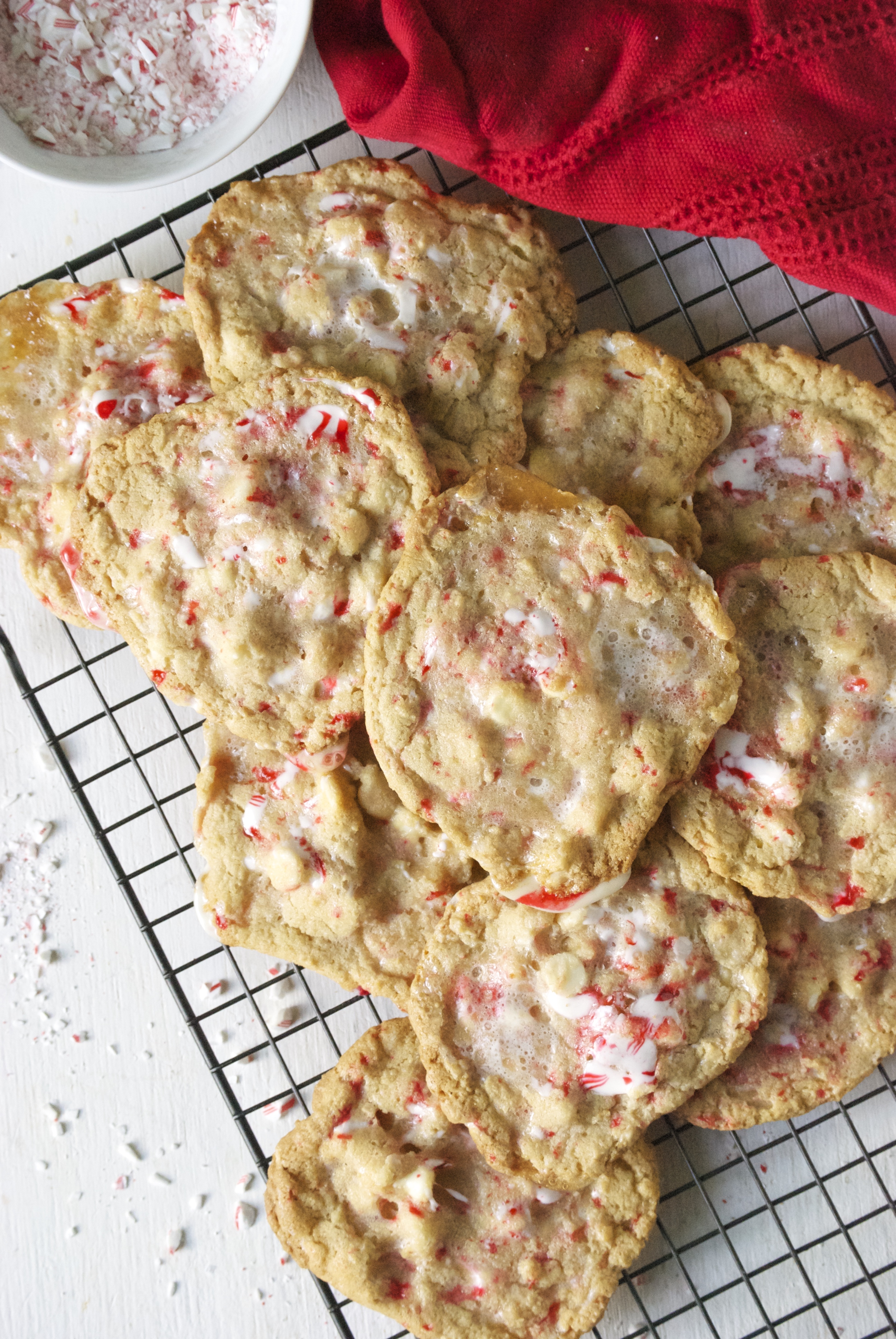 The Recipe: Crispy and Chewy White Chocolate, Peppermint Candy, and Marshmallow Cookies