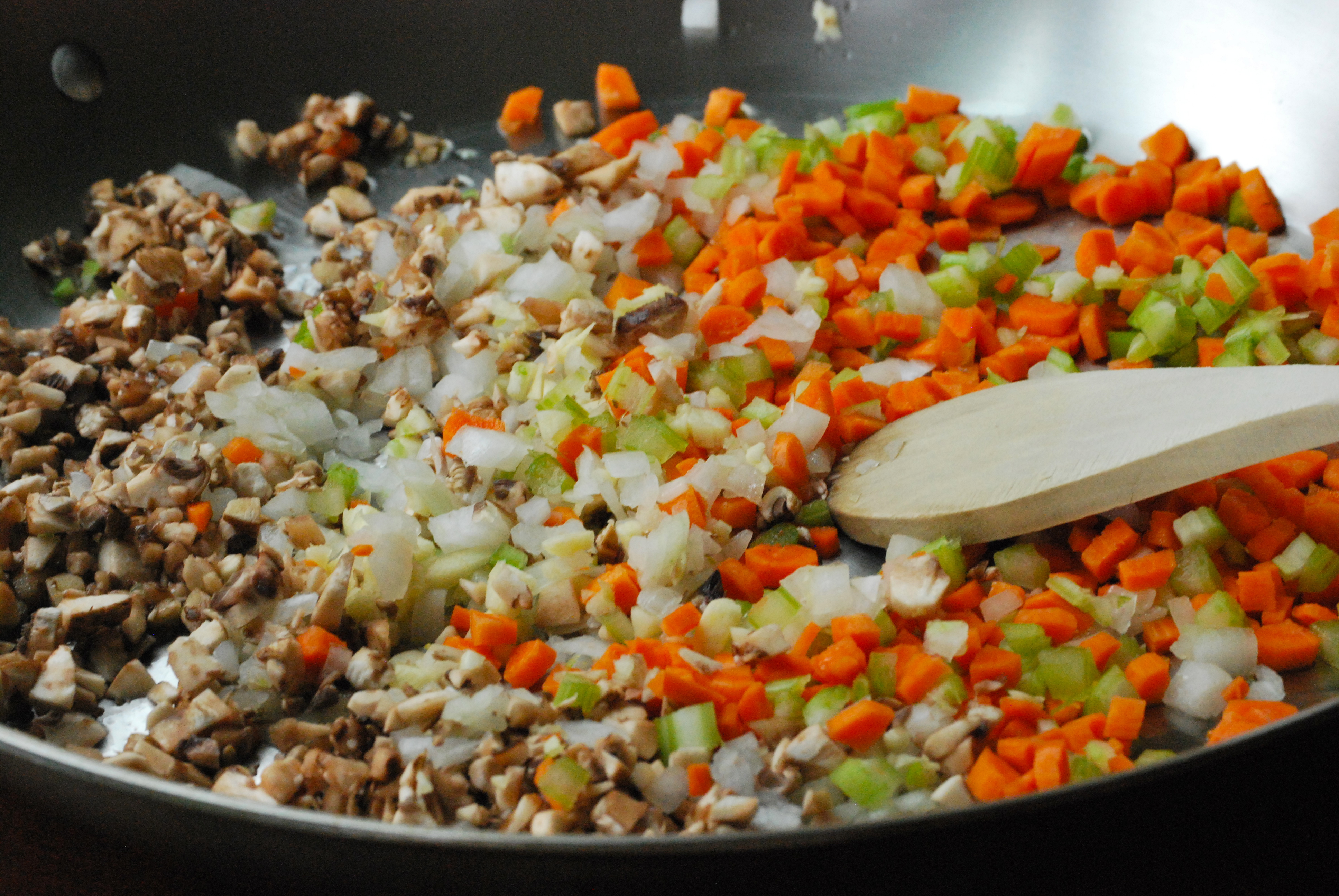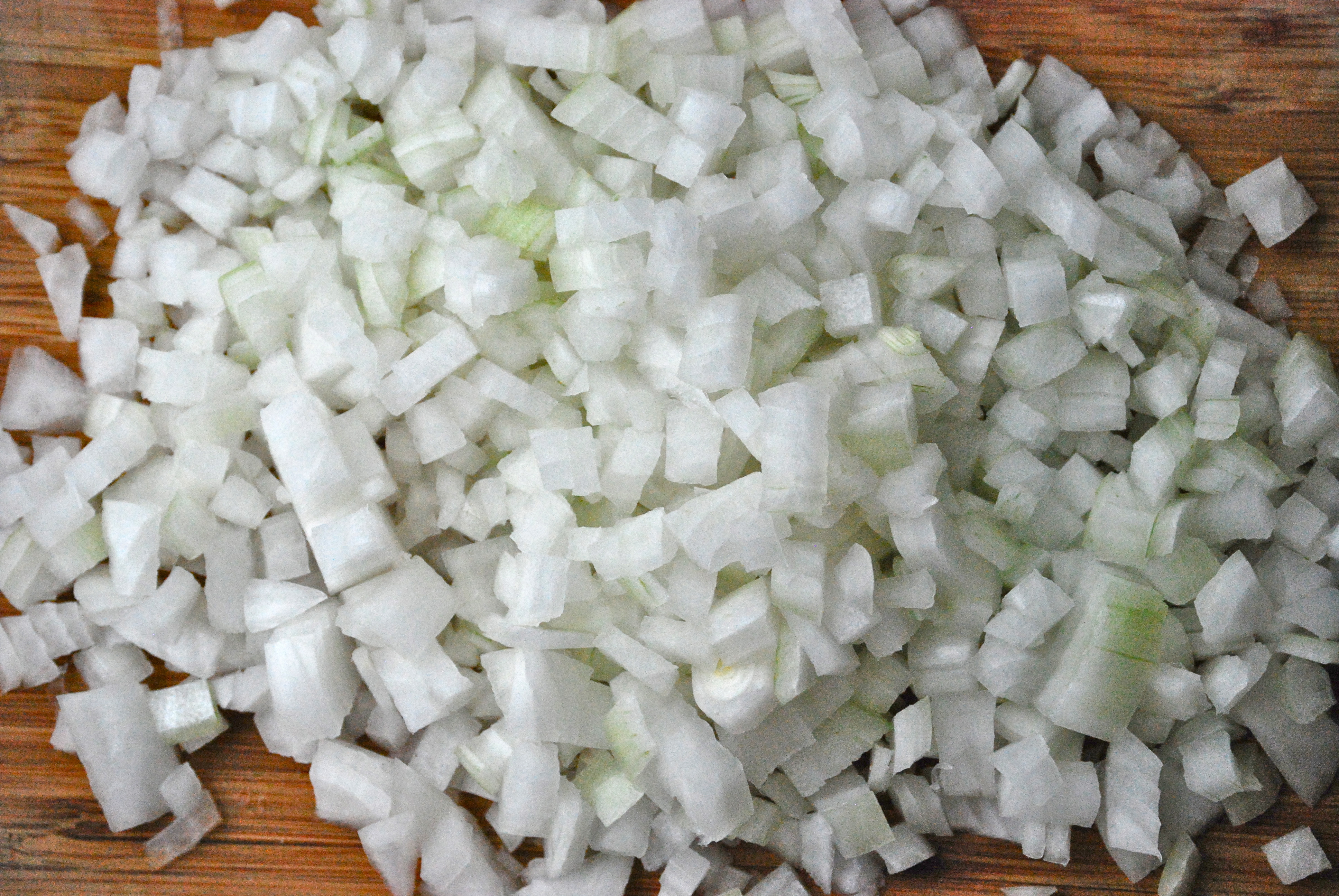 Add the diced onion and garlic to the hot pan. Add a splash of beef broth if there are some darkened pieces that need some attention. There is so much flavor in those pieces! Continue to cook and stir for a couple of minutes until the onion is somewhat softened, adding more broth if necessary.