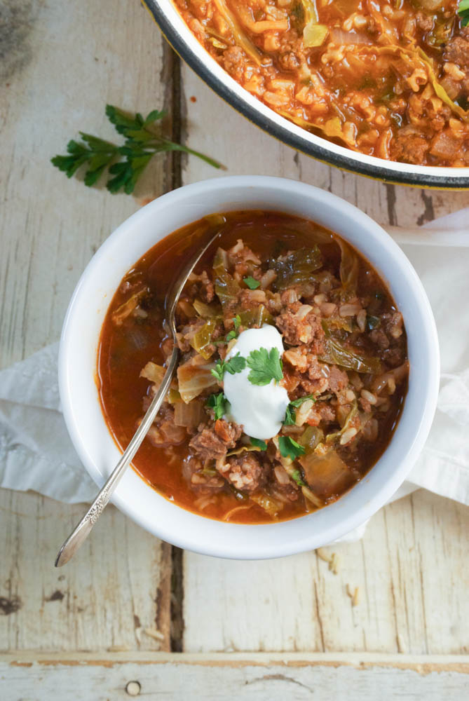 We came back to a much colder and whiter Minnesota than the one we left. In fact, the day we departed for ND, I was hustling about taking the recycling out with bare feet and wasn’t a bit bothered by it. Wow, things have since changed. We’re back to normal January weather with all of it’s wind chill glory (that’s sarcasm, folks). So, you can guess that I have warm comforting food on my mind. Forget the New Year health fanatics with their cold smoothies and cold salads. This girl needs warmth. Don’t fret though, this is definitely health food– full of grass-fed beef and hearty vegetables.