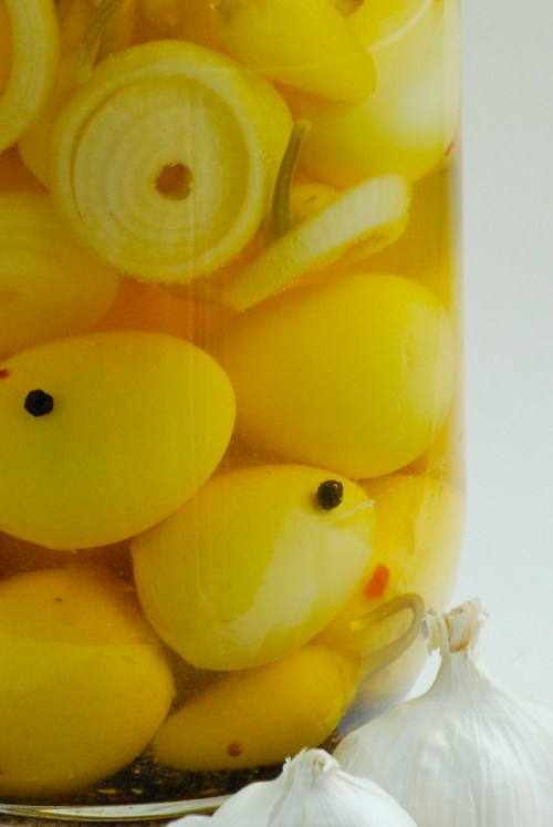 The key for me to keeping them refreshing is to lessen the salt and vinegar amount a bit. I remember this trick from my mom, which is why I probably loved her pickles so much. Add a little filtered water to the vinegar and it creates the most refreshing brine. Too much salt makes me want to stop eating something in a hurry, but just the right amount– and I can chomp on these babies all day long. The dill and garlic are just what you’d expect them to be– delicious. No surprises here. I always add carrots to my refrigerator dills– they’re fantastic. They take a bit longer to pickle than the cucumbers do. Using young small cucumbers is the key to a crunchy pickle, as is not heating up the brine mixture. Keep everything cold and you’ll have a fantastic crunch– I promise you.